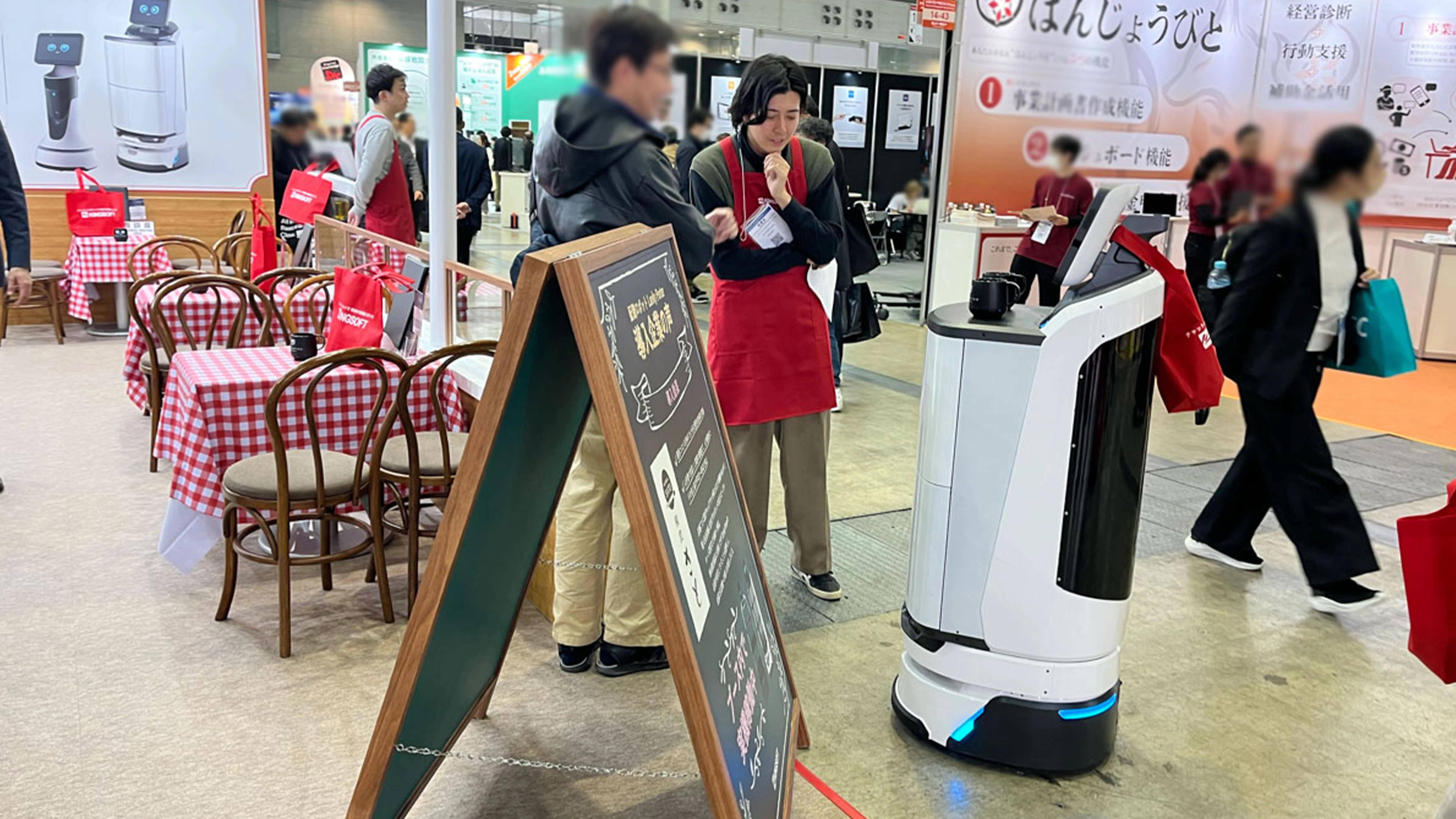 また、今回のスマートレストランEXPOでは飲食店を模したブースデザインを採用し、配膳・運搬・受付業務といった実際の店舗オペレーションを再現しました。ご来場者様には、AIロボットが現場でどのように稼働し、店舗の省人化と効率化に貢献するのかを具体的にイメージできる展示となりました。