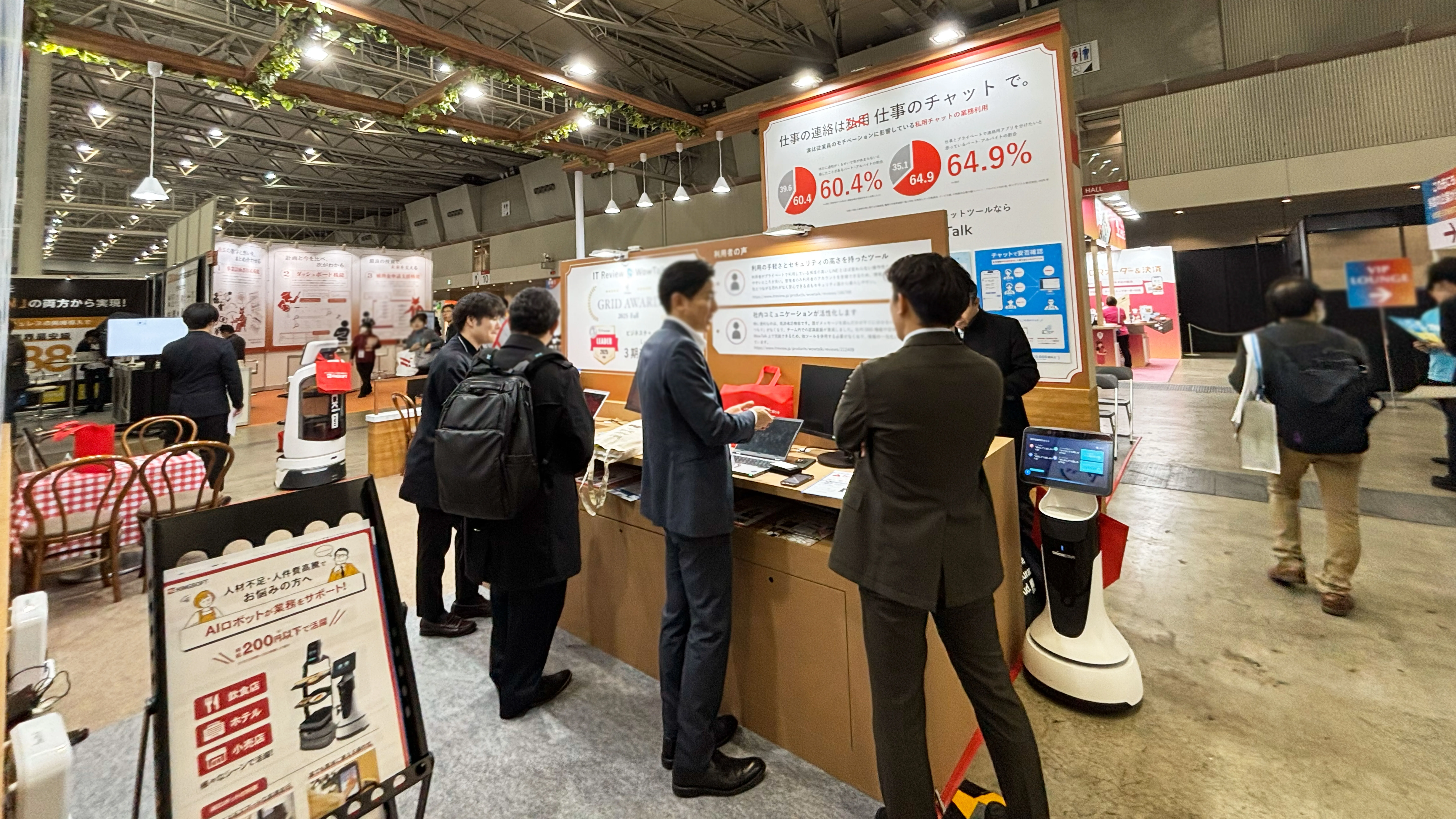 WowTalkのご紹介ブースでは、大手飲食チェーンから中小企業まで幅広い規模の企業様にご利用いただいている実績やレビューサイトに寄せられたWowTalkの評価をご紹介させていただきました。また、実際にデモ機を活用した実際の画面操作をご来場者様に体験いただきました。